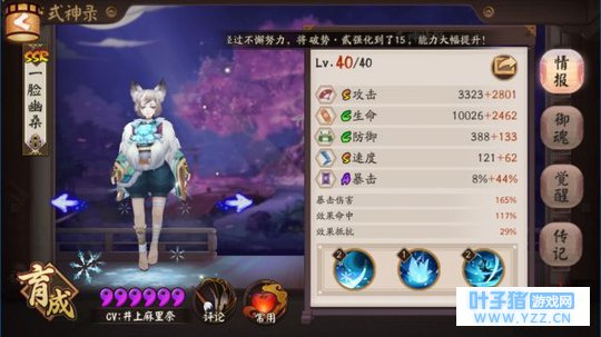 返魂香雪童子结合被动能抵挡一次封印御魂的效果,能够剧烈打乱现在斗技场上流行的x般火阵容的节奏,并打出反控。命中推荐达到110以上。