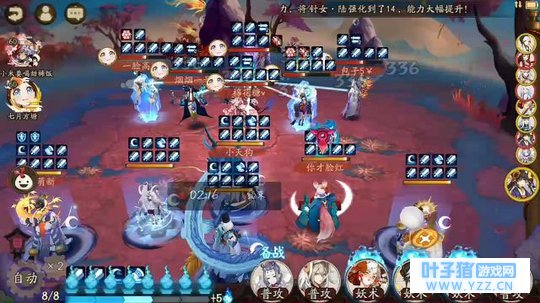 第一张图,录屏时间为2:16,雪童子即将在日和坊行动后行动,对方青行灯和日和坊为冰冻状态。