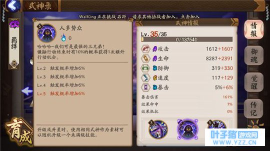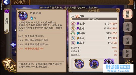 镰鼬的核心技能,拿到一速之后,提升阵容的整体速度。 三级之前是没有拉条效果的,所以一定要升到三级,拉条附带增加攻击以及效果抵抗属性。一个技能有着多个增益效果!这点上来说,性价比是其他拉条式神没有的。 因此,从各方面分析,镰鼬是一个较为全面的辅助式神。 PVE用法详解日常麒麟,石距等副本:这些东西不需要拉条的,镰鼬并不实用。 秘闻副本:部分情况下镰鼬还是有一定用处的,不过因为御魂一般散件,秘闻对式神整体硬度有一定要求,所以出现用镰鼬的情况不是很多。 大蛇副本:大蛇副本一般选择山兔多一些,镰鼬比较费火,而且除拉条外,加成的效果比较多余。 寮麒麟,阴界:一般情况都不选择带镰鼬,打风麒麟的话可以考虑带一个镰鼬,可以防止己方一直被堆行动条。 综合评定:PVE方面来说,镰鼬的实用性一般,仅针对部分情况可以使用。 御魂搭配建议御魂搭配方面,最常见的是散件!散件的镰鼬是为了得到速度的提升,关于御魂速度的相关知识大家可以戳进:https://yys.16163.com/thread-2919261-1-1.html 下面说一下在同样的副属性速度情况下,散件的选择指南。 首先是2号位,二号如果是双速是最好的,如果有一个强化不错的双速胚子。那么1,3,5这个三个位置尽可能的去和二号位搭出一个2件套的效果。 其次是4号位,首选效果命中,副属性带速度的,这样镰鼬的普攻有可能会出现意向不到的效果,配合被动,没准直接胖揍控场也是有可能的!!! 至于6号位,一般选择生命加成,来提升镰鼬的生存率。 镰鼬的速度越快,队伍整体的机动性就越强,不过要注意二速和一速的差距不要太大,否则可能会被插队。 套装御魂选择:选择一:招财猫四件套。 招财是镰鼬最佳的套装选择,这也是大佬和萌新的区别。大佬可能有一套招财260的速度,萌新可能才240速度的散件。注意,镰鼬的二技能人多势众是可以触发招财猫的,一个欧洲多动症镰鼬,可以回很多火!会大幅度提升阵容整体的机动性。 换句话说招财套的高速镰鼬基本等于一个永动机。 御魂位置建议:2速度4生命/抵抗/命中6生命 选择二:轮入道四件套。 轮入道可以让镰鼬的多动症更加严重,这一套带速度攻击和暴击的话,可能动起来,对面就被胖揍致死了~ 轮入道的选择情况,是你非常的欧,套装只能凑齐轮入道23333轮入道的缺点也很明显,频繁行动会比较缺火。 其他任意的套装,只要保证速度的情况下,如果损失1-2点的速度可以换来实用的套装效果,是完全可以的。 可能这是个娱乐套装选择? 二件套的选择方面:生命/抵抗/命中优先,无法达到以上条件的情况下,防御加成,暴击加成等等都是可以的。 PVP阵容指南镰鼬一般作为一速拉条式神存在于斗技场,最常见的是双拉条阵容,一速镰鼬,二速兔子。 常见阵容: 双拉暴力输出流:镰鼬一速,山兔二速,然后到打火机,双输出。 一般分段较低的斗技会遇见的比较多,完全是拼一速,谁的一速快,谁先出手秒掉对面的输出,谁就赢了,对于这样的阵容来说,拿到一速就赢了一半。(前提敌方的式神星级较低的情况下) 双拉双推流:一速妖琴或者镰鼬,另一个拉条山兔,配合日女酒吞,日女雪女等推条控制式神。 拿到一速之后,妖琴迅速拉酒吞叠葫芦,或者拉雪女进行全体堆条,如果可能冻住几个就更好了。 酒吞和雪女的唯一区别,在于酒吞可以不耗火进行输出,雪女可以群体控制,目前双拉双推已经成斗技主流打法之一了。 克制式神: 一切速度慢的式神吧2333 被克制式神: 一个比你还快的镰鼬或者其他拉条2333~ 实用tips总结:1.先喂技能再觉醒,大招一定要升到三级以上! 2.御魂方面,平民玩家优先散件,其次才是套装。 3.在触发多动症的情况下,可以利用镰鼬的普攻去试一下对面的御魂情况,例如镜姬,木魅,返魂香等效果类御魂。 4.清楚敌方的御魂后,把镰鼬的普攻效果当成一个控制去使用,有时候胖揍眩晕敌方雨女什么的!美滋滋~ 以上就是小编给大家带来的多动症少年成长指南,阴阳师镰鼬大型攻略专场的介绍,希望可以帮助到大家! 文章标签: [编辑:叶子猪小秘书]