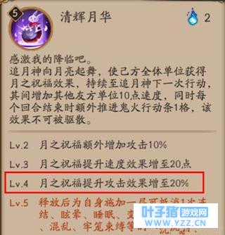全队速度提升:是兔子都会拉条,所以追月神对全队速度加成是20点,这就意味着所有成员的速度会大大提高,甚至输出会超过敌方而多输出一轮(几轮),别觉得多输出几次输出会高不了多少,如果是书翁呢?多跑一次就是几十万的伤害,这时候你还会觉得没有三输出伤害高?