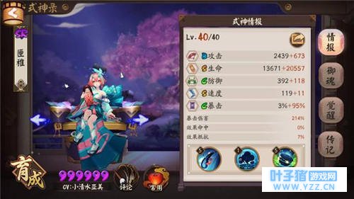 而花鸟的伤害挂钩的,其实是速度,为什么? 一是花鸟伤害主要看大保健后的针女白字而非黄字,暴伤提供的更重奶量而非伤害,而堆高攻击看似有道理,实则效率极低,因为花鸟初始攻击较低。 二是速度可以帮助花鸟跑控,加上关键的奶或者打上关键的伤害,更重要的是速度可以提供大量的攻击频率,攻击频率越高,触发针女的几率也就越高,用速度来提升花鸟的伤害相比于攻击来说更高也更有效。 花鸟在战斗前期用来保持队伍血量的稳定,不要吝啬鬼火维持血量,血量下去了等叠起保健就很难奶上来了,进入中期叠了三把大保健且取得了控制上的优势后,就是花鸟发挥的时候了,往往两下针女就能带走一个小半血式神,越进入残局,花鸟的重要程度就越高,几乎一个花鸟就决定了大半个队伍血量的增减,后期花鸟被控是非常非常伤的。 辉夜姬: 因为木魅的兴起和招财的衰落而上位,带高抵抗薙魂,没有什么特别值得说的,大家都会用。
