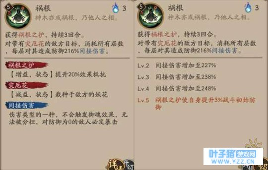 技能三:祸根 效果:获得祸根之护,持续3回合。对带有灾厄花的地方目标,消耗所有层数,每层对其造成防御力216%的间接伤害。 祸根之护:提升20%效果抵抗,技能满级额外提供自身3%的战斗初始防御力。 解读:简单来说就是面灵气的大招,先给自己加一个提高效果抵抗的buff,然后就是和面灵气一样的回收层数的技能,每层造成防御力216%的间接伤害,3层就高达648%,还好防御力天生数值不高,否则真的是太痛了。 总结: 当年返魂了防御力加成六星御魂的玩家都哭去吧,很明显官方这是开始对防御力属性动刀了,人面树是一个试点,姑且对于官方的行为不进行推测。 我们但只看这个式神,这是一个典型的靠防御力打输出的最硬式神,他的攻击完全就是废属性,因为所有的技能输出全是靠自己的防御力数值,所以想要提高他的输出能力就要玩命砸防御力,而防御力在提高输出的同时还带来了高额的生存属性。 大家都知道上千防御的阴阳师有多硬,所以人面树无脑堆防御的话,其硬度之高,成为游戏之最也未尝不可,这个式神很有发展前途,输出强不强没有测试我们不好评价,但是防御力和硬度绝对是超一流的。 推荐阅读: 阴阳师两周年开启皮肤7折活动 送皮肤得黑蛋 SP小天狗和白藏主隐藏的秘密 你都知道吗 阴阳师新界面建模预览 全新新召唤动画亮相 求换博雅!本周是阴阳师刷八百比丘尼成就的最好时机 文章标签: [编辑:叶子猪小秘书]