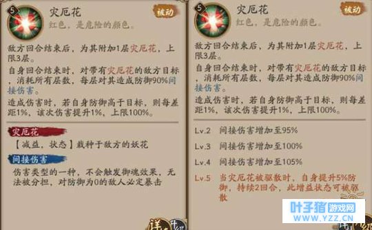 技能二:灾厄花 效果:敌方回合结束后,为其附加1层灾厄花,上限3层 自身回合结束后,对带有灾厄花的地方目标,消耗所有层数,每层对其造成防御力90%的间接伤害。 造成伤害时,弱自身防御力高于目标,则每差距1%,该次伤害提升1%,上限100%。满级时灾厄花被驱散可以提升自身5%防御力,持续两回合,该BUFF也可以驱散。 解读:说句不客气的话就是这玩意有点变相彼岸花和面灵气的味道,对面行动叠间接伤害BUFF,自己动的时候就给对方造成伤害,而且这个伤害是看自身防御力的,不过感觉伤害不是很高就是了,毕竟防御力基础数值不算高。