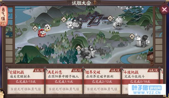 在这些活动中,我们可以发现一个规律,那就是不管是刷御魂,还是刷觉醒,每种任务的前几次的奖励是比较高的,后续就会有衰减。 这估计也是策划想让大家参与更多玩法而设计的,所以对于那些每种玩法都参与的玩家,达成120勇气值还是非常容易的。 以上就是阴阳师速刷120勇气值的攻略啦,希望大家喜欢。 推荐阅读: 阴阳师人面树退治奖励一览 蓝票黑蛋全都有 阴阳师新式神曝光 除了ssr桔梗还有神秘式神 阴阳师白藏主技能描述更改 小白已成小白蛋 阴阳师妖怪退治挨打式神推荐 特殊获胜轻松达成 文章标签: [编辑:叶子猪小秘书]