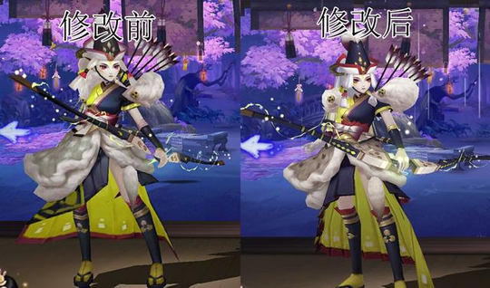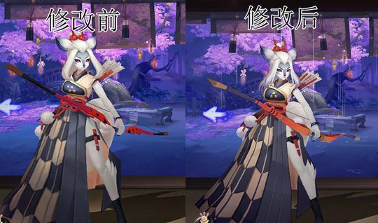 白狼 觉醒前的形象进行了优化,之前看起来更像是有点二哈的模样,整容后细化了头发的细节,整体看起来更加英气和凶了一些,且脸更加偏向人形了,还做了一定程度的瘦脸+瘦身。对于箭矢方面的细节也有了大幅的优化,整体还可以。