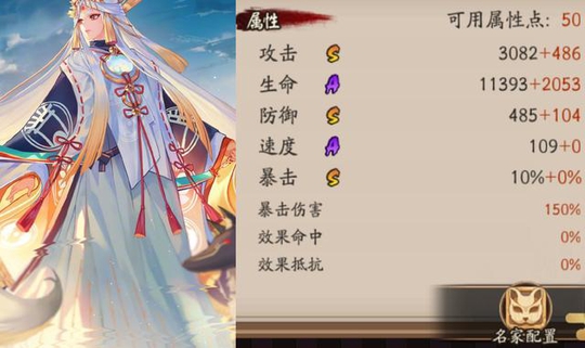 SP御馔津基础面板方面,攻击S、生命A、防御S、速度A、暴击S,是非常好看的三S双A的面板,天生就拥有极大的优势,不过攻击S方面的数值不算好看,不过3000+出头而已。防御倒是挺不错,速度A是109点也算是正常水平吧。其他面板没有太多亮点。总的来说SP御馔津继承了其原本SSR一样的优秀面板。