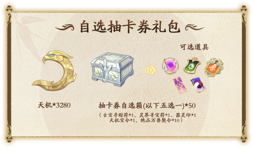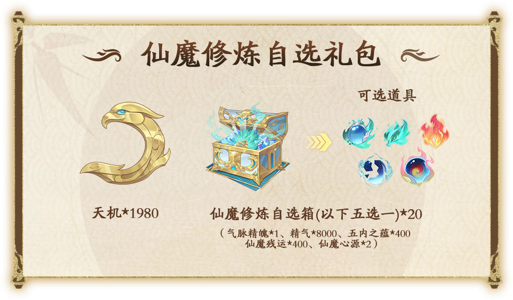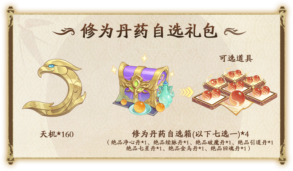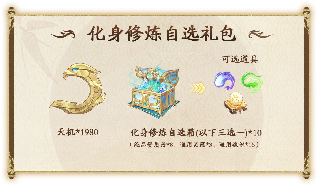 道友速来!《踏风行》抖音店铺新品上线,各式养成好物任选,轻松铺平你的修仙坦途! 【仙魔修炼自选礼包】 苦于材料不够无法迅速提升仙魔境界?【仙魔修炼自选礼包】全新上线!仙魔修炼、真魂养成材料一应俱全,以往只能通过闯关获得的材料现在可通过抖音店铺迅速补给,道友可自行挑选搭配哦! 【化身修炼自选礼包】 【化身修炼自选礼包】全新上线!包含可迅速提升战力的绝品资质丹、神识养成通用材料,道友可自行挑选,全面加强化身BUFF加成! 【装备养成自选礼包】 全新【装备养成自选礼包】上线!包含铭文锥、锁文晶、洗尘砂,道友可自行挑选搭配,针对性加强装备战力! 【自选抽卡券礼包】 全新【自选抽卡券礼包】上线!增加异兽抽卡券-绝品万兽契令可选!分两档价位道友可自行挑选: 【修为丹药自选礼包】 全新【修为丹药自选礼包】上线!增加绝品金乌丹(法相境)和绝品回魂丹(大乘境)可选: |