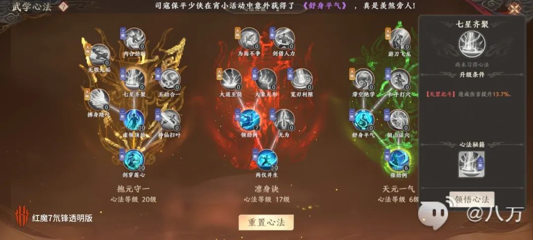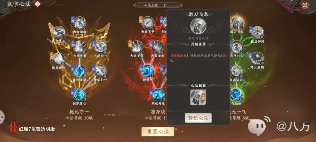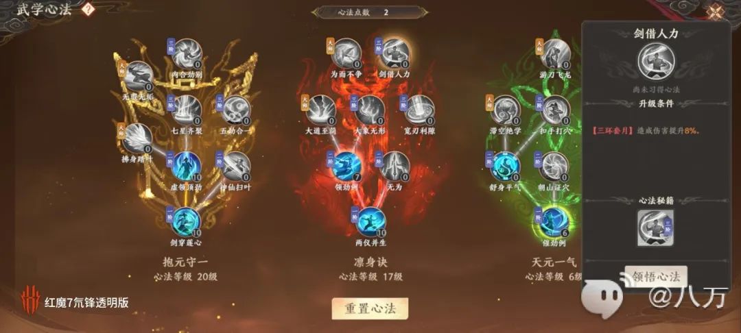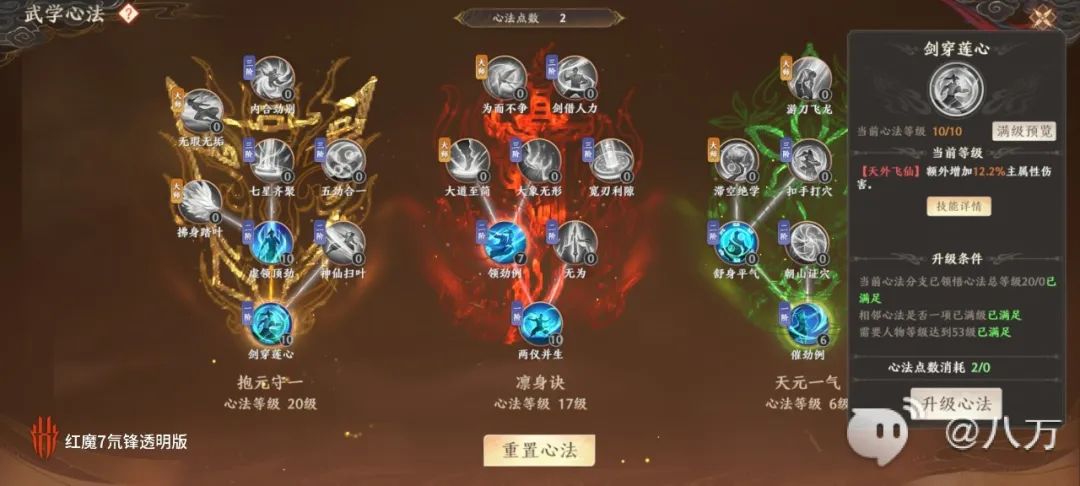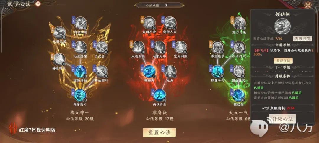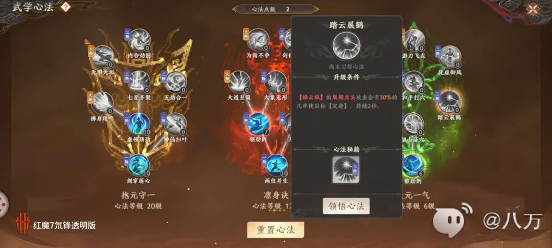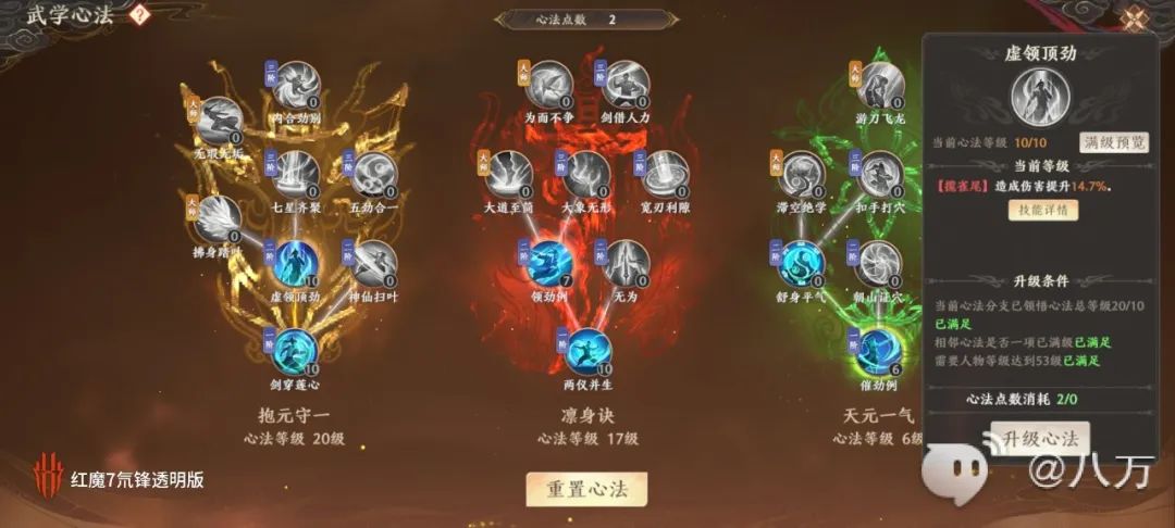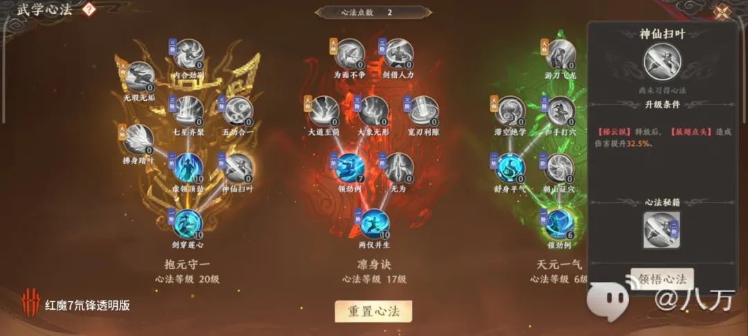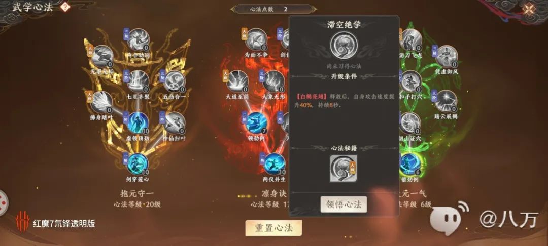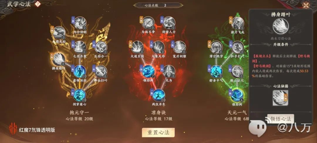 何为天道?何为人道? 逆天而行,此乃我道。 荒漠狂沙走万里,孤寂天涯一人行。 泱泱华夏,巍巍武当。 铲奸除恶,文成武德。 一统江湖,千秋万载。 随着游戏等级提升,会发现心法的重要性,心法点数又不能全部都点,选择就成为每个武当少侠的问题了,在这里我详细讲解一下。 武当心法介绍 打开武学,点击心法我们会看到一共有三种心法路线。 三种心法路线分别为:抱元守一、凛身诀、天元一气。 每条路线8种心法 【抱元守一】 一阶心法 剑穿莲心:增加天外飞仙主属性伤害。 二阶心法 虚领顶劲:揽雀尾造成伤害提升。 神仙扫叶:释放位移梯云纵,提升展翅点头伤害。 三阶心法 七星齐聚:天罡北斗造成伤害增加。 五劲合一:天罡北斗技能持续中,对 波及目标造成30%减速,持续1秒。 内合劲别:雀尾昏睡自效果然结束后对目标降低内功攻击15.5%,持续5秒。 大师心法 拂身踏叶:展翅点头后立刻释放野马跳涧。对目标15*3矩形范围敌人,展开2次攻击,每次造成50.53的基础伤害。 无瑕无垢:天外飞仙释放后,追加一个仙人指路的技能对目标造成60.31%基础伤害并且降低目标内功防御25%,持续8秒。 【凛身诀】 一阶心法 两仪并生:提平A八卦掌伤害。 二阶心法 领劲例:斜飞式,提高会心攻击 无为:白鹤亮翅技能期间内,增加对怪物伤害。 三阶心法 大象无形:增加真武七截阵技能伤害。 宽刃利隙:伺机待发释放后,提高自身造成伤害5%,持续6秒。 剑借人力:提升三环套月伤害。 大师心法 大道至简:加强三环套月伤害,3秒内每秒对范围内目标造成纯阳寒冰各30%伤害。 为而不争:普攻2次后25%改变普攻技能为燕子啄泥对目标范围3米内造成高于八卦掌54.92伤害。 【天元一气】: 一阶心法 催劲例:提高挑帘式获得护盾几率。 二阶心法 舒身平气:释放白鹤亮翅回复自身怒气。 朝山证穴:如封似闭,读条时减伤。 三阶心法 扣手打穴:增加如封似闭封穴效果。 踏云展鹤:概率附加展翅掉头定身效果,持续2秒。 凭虚御风:额外增加梯云纵移动自身移动速度持续2秒。 大师心法 滞空绝学:白鹤亮翅额外增加攻击速度40%,持续8秒。 游刀飞龙:减少伺机待发怒气。 武当心法流派 看到这里也明白每个心法的作用,那么下面咱们在讲讲每个流派如何搭配。 我把心法流派分为四种: 极致输出流 弱化输出流 保命续航流 杂乱无章流 一、极致输出流: 凛身诀为主的所有心法。 抱元守一为辅,点一阶和二阶所有技能,三阶点七星齐聚,大师心法全可以点。 所有点击的心法都是为了伤害而去,追求极致的输出,只为提高技能伤害。也算是现在的主流玩法。 二、弱化输出流: 抱元守一为主的所有心法。 凛身诀为辅,点自己喜欢常用的技能一阶必点。 这套心法是为了抱元守一三阶心法的五劲合一和内合劲别,减速和弱化敌人内功,主要还是输出为主,但是有一定追杀能力和反杀能力。 三、保命续航流 天元一气主点所有技能。 凛身诀为辅,点自己常用技能增加输出,一阶必点。 这套心法要说优势就是能打能跑,打的过我就打,有控制有减伤有减怒气,配合凛身诀的伤害,可以追击痛打落水狗,也可以打不过我就跑。但是不推荐一般玩家走这个流派。 四、杂乱无章流 心法比较稀缺,买不到没法走一个固定流派的,但是又不能空放心法点数,在这里我推荐一种点法。 凛身诀:1阶2阶点满 抱元守一:1阶2阶点满 天元一气:1阶点满 小氪玩家可能一时半会买不上三阶心法可以像我一样优先点凛身诀和抱元守一来增加伤害。 点天元一气的一阶心法增加一下防御护盾。等后面有高阶心法后在,洗点重新点。 这里有个小知识,心法每周首次可以免费重置,所以各位少侠可以放心尝试~ 以上就是【八部众】八万少侠总结出的武当心法加点流派,希望对大家有帮助! 更多门派攻略,请关注叶子猪《天龙八部2飞龙战天》官方合作专区。 |