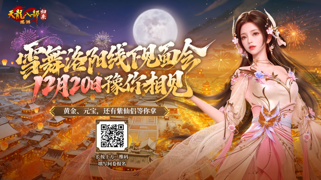 天龙江湖,不仅有快意恩仇,更少不了把酒言欢,这一次,我们不再隔屏相望。 游戏里的洛阳即将飘雪,游戏外,我们也将于12月20日在河南·洛阳,再次举办玩家见面会。和策划面对面交流,先领紫仙侣+周边伴手礼,再拿互动游戏奖励,还有精彩节目表演,诚邀各位大侠入席! 与此同时,备受瞩目的第二届“问剑归来”争霸赛总决赛,终于要在今晚7点正式拉开帷幕! 十六位高手已整装待发,只为那象征着江湖最高荣誉的冠军宝座! 雪舞洛阳 玩家见面会报名开启 下雪的洛阳是天龙玩家们永恒的情怀记忆,将见面会定址于此,只为让江湖情谊,在现实中寻得归处! 欢迎各位大侠踊跃报名,来见面会现场,和策划边吃边聊,共同探讨游戏后续规划,观看精彩节目表演,100%领永久紫仙侣时装+惊喜周边伴手礼,还有定制金条,2万绑元等奖励等你抱回家! 扫描图中二维码填写报名问卷 见面会活动时间: 2025年12月20日 签到和入场时间: 13:30-14:30 见面会开始时间: 14:30-17:00 精彩环节抢先看: 1、豪礼相送,满载而归 限定伴手礼:到场即得,内含仙侣情缘·紫绶(永久)及惊喜周边实物奖品。 惊喜抽奖:现场开启多轮抽奖,海量游戏元宝、定制金条、周边等实物大奖等你来拿! 2、策划面对面,畅聊规划 策划团队现场与您交流,无论是对玩法的建议、对门派的吐槽,还是对未来的期许,我们都将洗耳恭听。现场更将探讨后续版本规划,让你提前知晓江湖风向。 3、视听盛宴,古风佳人舞蹈 特邀专业舞者演绎古风天龙舞蹈,在曼妙舞姿中重回那片记忆中的苍山洱海。 4、趣味互动,默契大考验 江湖儿女,多才多艺。现场准备了你比我猜、听音乐猜地图等经典有奖互动游戏。奖品有2万元宝、1.2万元宝、鼠标垫、充电宝等惊喜奖励! 5、现场竞技,公平PK 谁是最强操作王?现场特设公平竞技PK区,大侠们可上台切磋,我们将根据每位玩家的胜场次数发放丰厚奖励。 把酒言欢,是跨越山海的相知;剑影交错,是问剑归来的豪情。 江湖的每一次精彩,都因有你的参与而闪耀。 见面会名额有限,机不可失,快来报名参加吧! 看决赛 赢神秘礼包+实物好礼 看巅峰对决,怎能少得了好礼助兴?为了感谢各位大侠对赛事的关注,龙妹在准备了丰厚的观赛奖励!锁定决赛,参与互动,海量福利拿到手软! 直播时间: 今日19:00 - 22:00 观看决赛: 小音符+微信视频号 同步放送 零门槛必得: 观看决赛点击小风车即可领取决赛专属神秘礼包,还有更多限定礼包,助你战力更上一层楼! 实物大奖狂送: 直播期间,将不间断发放福袋。天龙归来定制金条3g、纪念金钞1g、键盘、音箱、充电宝、鼠标垫等一系列周边好礼等你来拿,千万不要错过! 竞猜得元宝: 有奖竞猜火热进行中,400绑元等你轻松拿走! 还剩最后9小时的时间,还未参与竞猜的玩家快扫描下方二维码参与活动,拿走绑元奖励吧! 今晚19:00,龙妹在决赛现场与你不见不散~ |