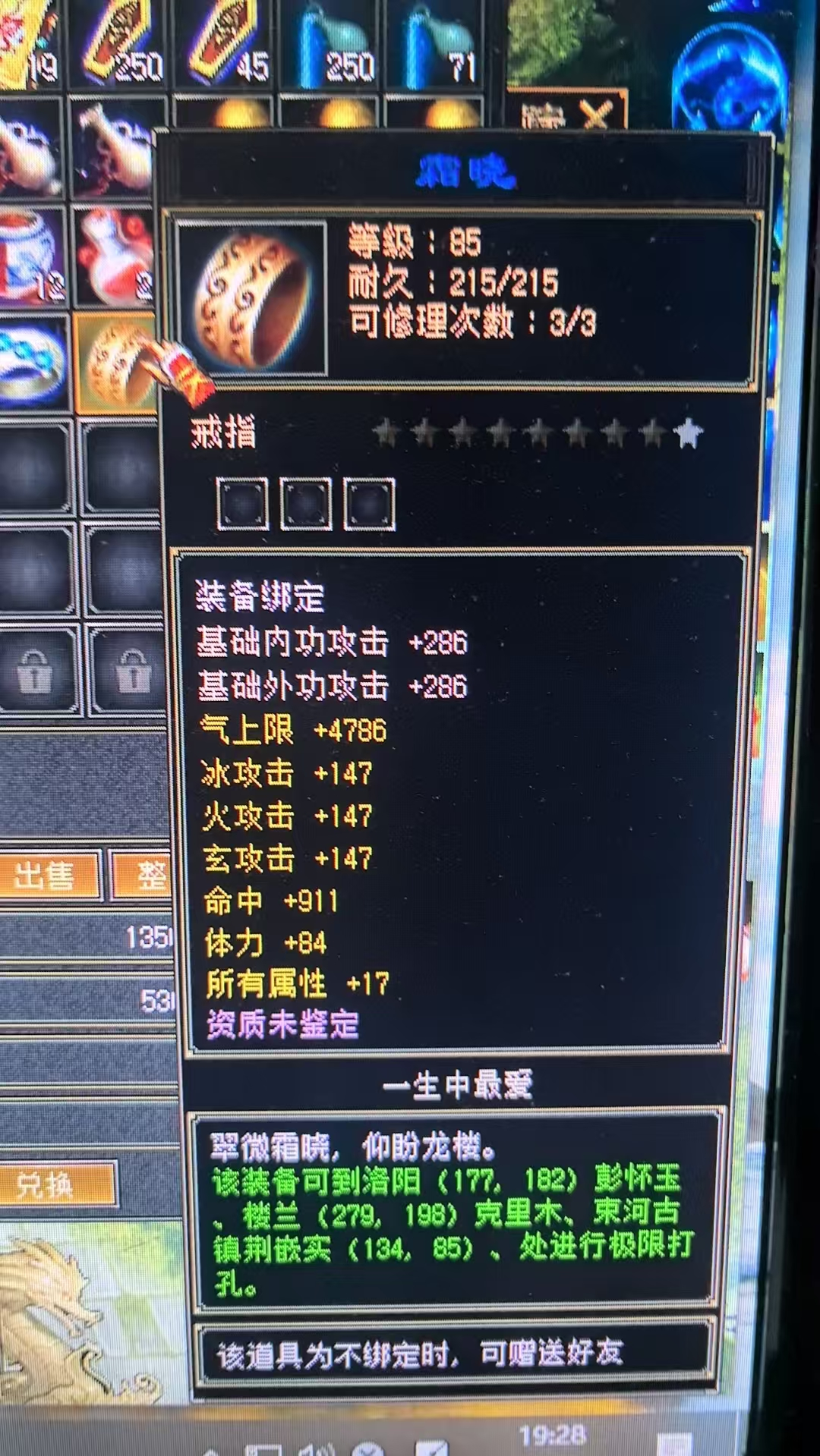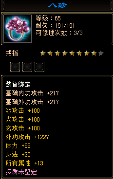 深蓝大八星,看着都开心,属性全拉满,梦里都笑醒 每次龙妹打开投稿信箱,都要被震撼到,因为大侠发来的装备实在是太!强!了! 究竟是谁的装备让龙妹直呼神中神?又是谁的运气让隔壁小孩都馋哭了? 快来跟龙妹一起,开开眼界吧! 满级区 来自记者团大侠【全身不遂】的投稿 一上来就是王炸! 冰火玄毒155、内功攻击1703 而且还有命中和体力 词条完美无废属性,强迫症看了都说好! 来自记者团大侠【少卿】的投稿 火玄毒168、内功攻击1850 命中、体力、所属 虽说少了一种属性 但仍不失泛用,实战输出绝对爆炸,不遑多让的极品! 来自记者团大侠【晚安安】的投稿 冰火玄163、内功攻击1791 加上命中、灵气和会心 简直是为武当量身定做! 就连隔壁慕容都要红了眼 谁能拒绝这么完美戒指? 来自记者团大侠【初椿丶】的投稿 内防1862 闪避、体力、定力、身法、会防、所属 这就是深蓝大八星带来的安全感 来自记者团大侠【森蓝丶】的投稿 外防1904 闪避、灵气、体力、身法、会防、所属 这属性已经相当全面了 有没有大侠能拿出比这更好的腰带? 89级区 来自记者团大侠【晚安安】的投稿 内防1512 闪避、灵气、体力、定力、身法、会心防御 朴实无华又强力的卡89级毕业腰带 来自记者团大侠【阿鲲】的投稿 冰火玄毒152、内功1671 还有命中和体力 又是相当完美的内功门派通用戒指 不论什么门派,带上它面板直接起飞 冰火玄毒154 体力、定力和身法 这个护符就更通用了 哪个门派都可以带,带上都强力 来自记者团大侠【全身不遂】的投稿 毒冰145 气上限、体力、身法、会心、所属 对于星宿、峨眉来说算是不可多得的戒指 来自记者团大侠【一生中最爱】的投稿 冰火玄147 还有命中、体力、所属和气上限 词条很不错 虽说气上限差点意思,但知足常乐嘛 69级区 来自记者团大侠【晚安安】的投稿 冰火玄100 外功1227 还有体力、身法和所属 外功门派所需的属性它全有 龙妹只能送上三个字:神中神! 来自记者团大侠【森蓝丶】的投稿 火玄毒90 血上限、命中、体力、会心 深蓝大八星项链本就难做 生存输出两不误,稀有度MAX! 来自记者团大侠【い唐三葬丶】的投稿 火玄101 外功1242 力量、灵气、体力和所属 十分给力的词条 除开天山,其他外功门派简直如虎添翼! 来自记者团大侠【青灯古城】的投稿 外防1129 闪避、力量、灵气、体力、会防和所属 教科书级别的卡69级毕业腰带 终极彩蛋 来自记者团大侠【阿紫】的投稿 8本武魂书再现! 又是一次武魂机缘,抽中8本武魂技能拓展书 龙妹一点都不酸,真的(疯狂擦口水ing 来自记者团大侠【风息べ】的投稿 龙妹原以为开出6级宝石已经很欧了 没想到还有高手! 琅嬛宝箱喜提6级晶石自选礼盒 恭喜大侠! |