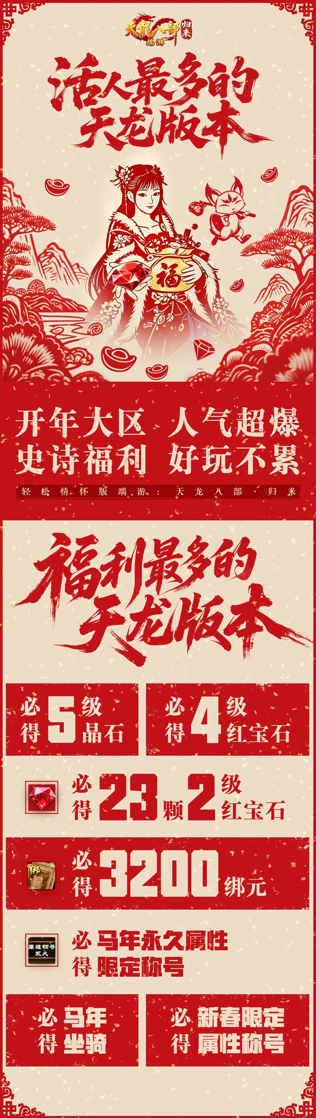 江湖夜雨十年灯,昔日网吧战天龙 犹记得上一站“雪舞洛阳”网吧线下见面会,现场人声鼎沸,热血沸腾 各位大侠的认可与喜爱,激励着我们继续前行 2026年天龙归来首场见面会,我们联动了山东省济南市最豪华的连锁网咖 投资超2000万的:NB电竞 最NB的归来玩家 配最NB的电竞网咖 最NB的排面,永远属于大家 本次见面会,主策划超哥将会现场汇报新年规划,海量元宝、归来定制金条大放送,还有天龙历史首次的保时捷跑车大奖现场抽取,更有御姐Coser天团助阵,期待您的莅临! 济南网吧见面会信息一览 全线顶配外设、电竞级显示屏、奢华舒适的对战环境!在这里上网,手感拉满,排面拉满! 活动时间: 2026年1月31日 14:30-17:30 地点: 山东省 济南市 历下区 泉城路339号 恒祺广场4楼4008-4009商铺 点击下方图片查看详细内容 活动精彩速览 主策超哥化身“网管”,开机上网,汇报工作,帮你扫码买单洗宝宝,搓装备,还送保时捷跑车! 绝美Coser、女神车模团,精彩表演 “线下真实”,公平PK表演赛,参与就有奖 趣味互动小游戏,节目效果拉满,线上线下都有福利 现场+线上双重抽奖,归来定制金条、金钞、精美周边送送送! 网吧联动包吃包玩 归来玩家走哪都有排面 惊喜还远不止于此,只要你在济南,这波福利人人有份! 送吃! 送网费! 送游戏礼包! 我们联动了NB电竞旗下的多家门店,只要前往指定门店,玩天龙归来,就能获得奖励! 点击下方图片查看活动详情 时光或许会老去,但那份属于天龙的热血从未冷却。 大侠,键盘已经擦亮,机器已经开好。这一次,别让你的位置空着。 我们在济南网吧,等你归来! 今日活动 只需点赞本文并分享到天龙游戏群(20人以上),将截图私信发送给龙妹,并在评论区留下您想说的话,即可参与《天龙八部·归来》游戏礼包码抽奖,共抽取10个!快快参与吧~ 礼包码内容包含: 坐骑:云霄羽翼(30天) 金蚕丝*10 润魂石*3 温馨提示:游戏礼包码将在下期公众号开奖,请中奖的大侠私信龙妹发送中奖截图,龙妹会在3个工作日之内把礼包码私信发送给您,请注意查收哦~ 添加天龙归来小助手企业微信,享受企微专属见面礼、独家版本密报与限定活动特权,助您新江湖快人一步,再登武林之巅! 各位大侠想领取福利嘛?想获得一手资讯嘛?想了解玩家与天龙之间的酸甜苦辣吗?那就点击下方大侠必看了解更多资讯吧! 竞猜得绑元最后1天,今晚6点全员领礼包! 你绝对没见过的奇葩称号,明天免费送! 天龙历史最强操作手齐聚归来,看看你认识几个! 2月5日新春版本王炸!签到必领5级晶石+3200绑元+马年坐骑! |