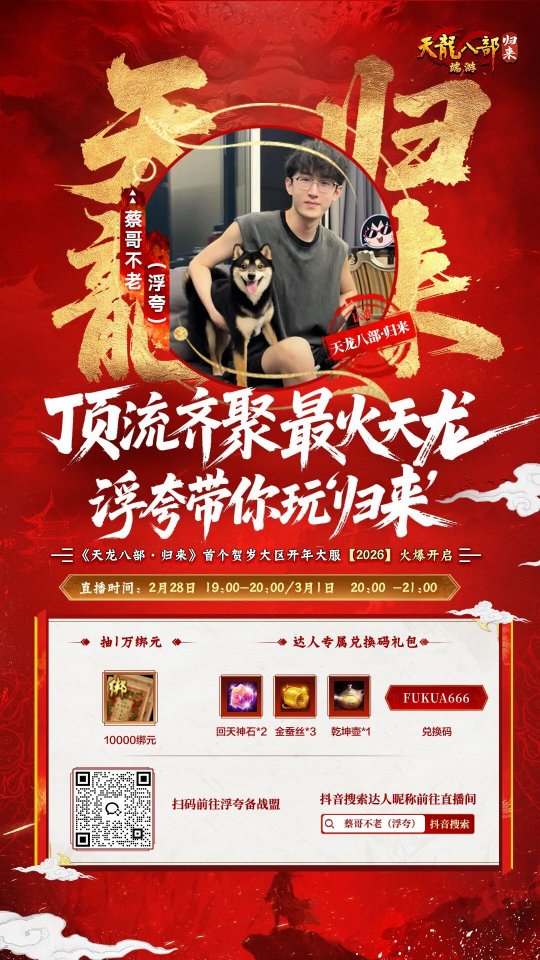 初春3月,江湖沸腾!开年贺岁新服【2026】已于昨晚19:00火爆开服! 看着服务器瞬间飘红的盛况,龙妹心中只有满满的感动~ 新服【2026】不仅代表着全新的起航,更揭开了天龙归来2026年红红火火的序幕! 龙妹希望2026年的天龙归来和各位玩家大侠们,都能如同2026新服的火爆一样红火一整年! 服务器人气炸裂,雕像大乱斗燃爆全场 就在昨天,新服【2026】刚开服,无数大侠便如潮水般涌入!服务器瞬间飘红,排队2000+! 直接把开年第一战的氛围感拉到了极限,隔着屏幕都能感受到大家那份迫不及待的热情! 大理、苏州、洛阳水泄不通,这火爆的场面,这熟悉的拥挤感,伴随着雪天洛阳经典的BGM,是不是瞬间唤醒了你当年在网吧连坐、通宵达旦的青春记忆? 昨晚【2026】刚一开服,不仅是玩家兄弟们热情高涨,还有电竞女神Miss韩懿莹、小苍,携手实力派大神主播蔡哥(浮夸)正式加盟! 5级体力+5级属性!他们各自豪横起号,并带领着各自帮会【浮夸真的要强】、【七芯海棠】、【点苍派】努力冲级,参与各个活动。 浮夸细致体验天龙归来的每个玩法,对归来的轻松减负、超多福利做出了很高的评价,并喊话自家粉丝,Mmo大军共同前来体验天龙归来。 Miss在跨服地宫4层大杀四方,热情的归来玩家们也是对Miss的到来进行了一波又一波的“亲切欢迎”,不断把Miss送进地府,跟孟婆都混成了熟人! 小苍带领帮派成员共同参与了雕像争夺活动,也是受到了众多归来玩家的“众星捧月,特别关照”,全场出现最多的就是“复活弹窗”,场面激情满满。而且还喊话,一定要和Miss一起PK,一决高下! 各大帮会集结号角吹响,大侠们在野外上演激情碰撞。 放眼望去,满屏技能特效交织成的视觉盛宴,频道里疯狂刷屏,指挥呐喊此起彼伏,让整个服务器的温度飙升到了顶点! 这热火朝天的烟火气,这满屏热血的兄弟情,正是咱们天龙江湖最迷人的底色! MMO顶流 蔡哥(浮夸)今晚再次开播 领到了春节福利,江湖激情也绝不能少! MMO圈的顶流——蔡哥(浮夸),已经正式入驻开年新服【2026】 今晚20:00—21:00,将开启他在天龙江湖的第二次重磅直播! 作为曾经的职业选手、世界赛亚军。他不仅在游戏里投入惊人,更是一位把义气刻进骨子里的狠人——甚至不惜自掏腰包亏本20万,也要为兄弟打造出极品装备! 这位既讲道义,又懂散财的MMO一哥,今晚又会在【2026】服如何挥金如土、大杀四方?让我们一起见证顶流的江湖排面! |