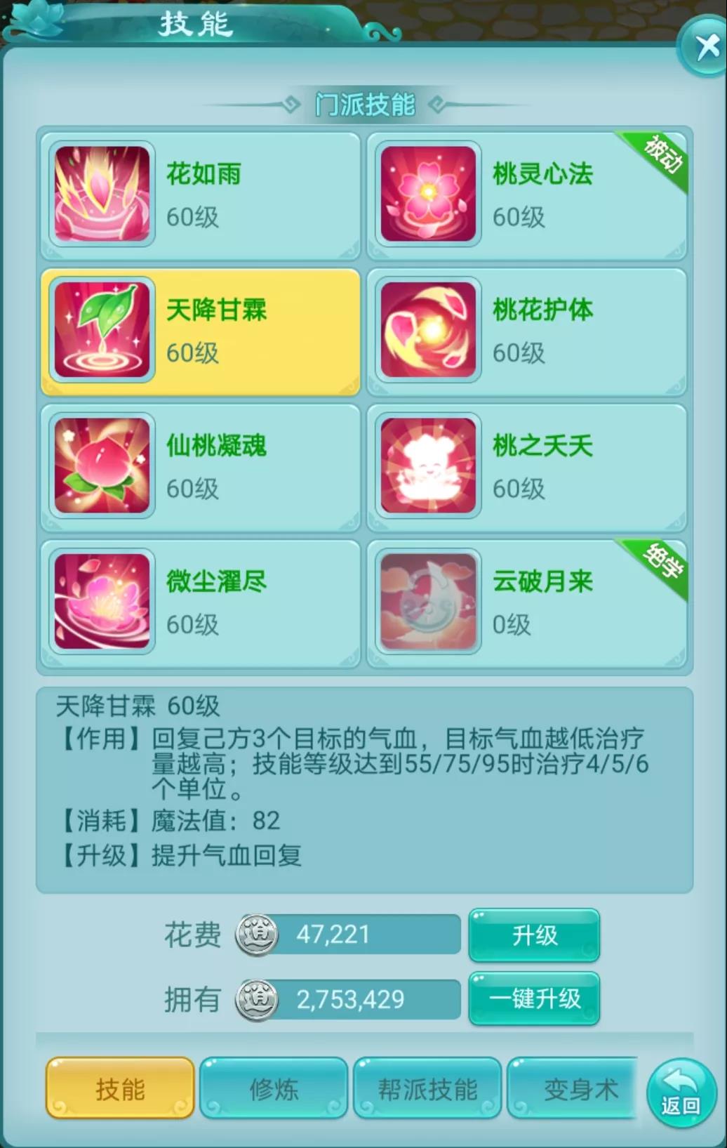 《逍遥情缘》手游即将开启公测,那你对游戏内的六大门派有多少了解呢?如果你还不知道自己适合什么门派,也不知道要玩什么门派...不如让我为你们详细讲解《逍遥情缘》手游里的六大门派,你就知道如何选择啦! 【法术群伤 水晶是也】 作为法系输出门派,水晶宫运水成龙,群伤无数。门派师父为东海龙王,门派角色可选逍遥仙和水玲珑。门派技能: 两大群体技能伤害: 【龙卷四海】:释放法术能召唤水龙攻击敌方4个目标,技能等级达到55/75/95时攻击会相应的多增加一个单位。 【龙啸九天】:能攻击敌方全体目标,消耗目标的魔法,伤害越高,目标损失的魔法就会越多。 1个单体伤害技能: 【水龙决】:召唤水龙攻击敌方单体,附带减治疗20%效果,持续2回合,升级之后还能提升技能伤害。 加buff技能: 【水清术】:解除己方单体所有异常状态,永久提升角色封印抵抗。 【游龙叠浪】:使用后可提升友方目标单位的法术连击概率和法术强度,持续4回合。升级提升增强效果,永久提升角色法术防御。 独门绝学: 【冰封万里】:能召唤极寒之冰攻击敌方5个目标,有概率冰冻目标,使目标2回合无法行动。 【物理群伤 兽王莫属】 猛兽之王,驭万兽,威力无穷!门派师父为金狮魔王,门派定位是物理群伤,以一当十,想要施展兽王宗的门派技能需要先变身,兽王进场自带变身效果,可选角色为魔九幽和夜罗刹。 门派技能: 【野性召唤】:除了能召唤野兽攻击敌方3个目标,还能自己附加变身状态。持续6回合。(变身状态下可提升物理伤害结果,可释放雄鹰振翅、魔龙突刺、疯狂连击、玄武盾击)升级提升技能伤害。 【雄鹰振翅】:召唤苍鹰攻击敌方4个单位,伤害不衰减,使用后休息一回合。随着技能等级达到75/95时还会多增加1个单位哦。 【魔龙突刺】:攻击敌方单体,忽视敌方大量防御攻击目标:提升技能伤害,永久提升角色出手速度。 【疯狂连击】:疯狂攻击目标3次,伤害逐渐递减,使用后休息1回合并取消变身:技能等级达到75/95时攻击次数增加至4/5次。 【玄武盾击】:消耗气血攻击目标,自身回复10%的魔法上限值,升级提升技能伤害,永久提升角色物理攻击。 门派绝学: 【鹰击长空】:无需变身,临时提高10%的物理攻击释放一次鹰击,当目标不足以将鹰击的攻击次数全数打出时,可重复攻击已被攻击单位,攻击重复单位伤害每次减少40%,使用后休息一回合:技能等级达到75/95时攻击次数增至5/6次,升级提升技能伤害。 【物理点杀 天策有方】 相比于水晶宫和兽王宗的群体伤害,天策府更喜欢高强的爆发力和点杀能力,主打的策略就是一个一个攻破敌方目标。门派师父是秦琼,可选角色为剑南天和烟青萝。 门派技能: 高爆发技能: 【千军破】:使用时气血要大于50%,连续攻击同一目标3次,伤害逐次提高,使用后休息一回合:升级提升技能伤害。 【剑归无极】:物理单体,临时提高20%的物理攻击,升级提升技能伤害,永久提升角色物理攻击。 buff加成: 【蓄势待发】:对目标造成少量伤害,当前回合增加自身50%的减伤效果,并临时增加自身60%的速度,持续2回合,永久提升角色出手速度。 群伤技能: 【剑气凌云】:物理群体技能,对3个目标造成伤害,升级提升技能伤害。 【破釜沉舟】:使用时气血要大于20%,分别攻击敌方4个单位,使用后休息一回合,升级提升技能伤害,永久提升角色封印抵抗。 门派绝学: 【刀光剑影】:疯狂攻击单一目标3-7次,第4次开始,每次攻击命中降低20%,未命中则停止攻击,使用后休息一回合。 【职业奶妈 瑶池】 瑶池定位就是职业奶妈,既能回血也能起死回生。门派师父为瑶,可选角色为水玲珑和逍遥仙。 门派技能: 治疗回血: 【天降甘霖】:回复己方3个目标的气血,目标气血越低治疗量越高,技能等级达到55/75/95时治疗4/5/6个单位,升级提升气血回复。 【桃之夭夭】:召唤桃之夭夭,己方最多只能存在一只,可治疗友方单位,召唤生物拥有人物修炼等级加成,永久提升角色法术强度。 起死回生: 【仙桃凝魄】:复活己方死亡目标并回复一定的气血,永久提升技能伤害,升级提升气血回复,永久提升角色封印抵抗。 攻防技能: 【花如雨】:法术攻击3个目标,有概率降低主目标当前回合的物法伤害,技能等级达到55/75/95时攻击4/5/6个单位,升级提升技能伤害。 【桃花护体】:增加己方4个目标物理防御,持续4回合,技能等级达到75/95时作用5/6个单位,升级增强技能效果,永久提升角色出手速度。 buff技能: 【微尘濯尽】:解除己方单体所有异常状态,永久提升角色气血上限。 门派绝学: 【云破月来】:回复1个友方目标大量气血(若目标倒地则复活目标并恢复大量气血),同时解除所有异常状态。使用后休息一回合,升级提升气血回复。 【吸引牵制 幽冥殿】 幽冥殿,其实是一个巨肉坦克型门派,可以说它上场就是吸引火力,牵制敌人的行动。门派师父阎罗王,可选角色魔九幽、夜罗刹。 门派技能: PK牵制对手技能: 【邪恶光环】:嘲讽敌方3个目标,并减少自身受到的伤害,嘲讽持续2回合,技能等级达到75/95时作用4/5个单位,永久提升角色封印抵抗。 【鬼王阎令】:单体法术,使目标2回合无法复活,升级提升技能伤害,永久提升角色出手速度。 治疗回血: 【死亡缠绕】:攻击敌方单体,使目标中毒5回合,并为5个友方单位回复气血,升级提升技能伤害,提升气血回复。 挂机常用技能: 【幽冥鬼影】:攻击敌方3个目标,有小概率降低主目标防御,