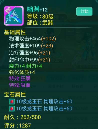 少侠们好吖~ 最近收到很多关于打装备的消息,说是很难打到双红装备。 今天就带大家来瞅瞅那些榜上有名的双红装备。 大家一起沾沾喜气呀。 首先咱们先看看这件龙怒 双红简易+断刃术 断刃术特技能够持续10回合 降低敌方单体15%物理伤害 在PVP中非常好用的一个特技 可以极大地削弱对方物理输出 法强属性121其实还不错啦 主要是有双加魔力11点 也能拉回一些些呀 这样一件双红装备你爱了嘛 双红特效狂暴+吸血幽渊 这件装备非常不错啊 狂暴可以有概率增加伤害 吸血可以有概率将伤害转化为自身气血 这个搭配简直太牛了 一边加伤害,一边给自己加气血 想想都觉得爽歪歪啊 自身物攻属性464已经很高了 还有魔力、耐力、体质各4点加成 这件装备简直就是物理输出选手的大宝贝呀 群体太极+法术忽防相思佩 这件玉佩我相信会有很多少侠会喜欢 群体太极可以让全体队友3回合内 受到的法伤结果减少一半 特别适合在对面法术输出比较多的情况下用 法术忽防可以忽略目标的法防 这俩搭配在一起 就是一边减少队友的法伤 一边减少对面的法防 哇~这是什么神仙组合呀 双红宝石精通+群体重生腰带 虽说腰带不带愤怒有点... 但是这俩放在一起也很有看头呀 宝石精通可以提高黑宝石效果 群体重生这个特技也非常强大 能够满血复活所有死亡队友 在队友站的少倒的多的情况下 群体重生技能一出 队友嗖嗖嗖地全站起来了 那场面简直能把对面气晕过去 来看这枚80级金鳞戒 双红宝石精通+嗜血连击 看到嗜血连击相信就有 很多物理输出少侠眼前一亮了吧 而且宝石精通能够让宝石效果提高20% 再加上自身物攻属性也不低 还有耐力、力量、体质各4点的加成 让这枚戒指简直闪闪发光 让所有物理输出位置都为之心动呀 双红简易+幽冥爪70级头盔 自身基本属性就不差 再加上体质+4点、耐力和敏捷各+3点 就已经是一顶很不错的头盔啦 还有幽冥爪特技加成 能够对敌方全体造成法术伤害 这样的头盔少侠们都爱了嘛? 好啦~ 以上就是瑶瑶带来的双红装备分享啦 大家都快来沾沾喜气吖 说不定再打装备的时候 就能捞到一个大家伙呢 更多精彩资讯,请关注叶子猪逍遥情缘手游官方合作专区。 |