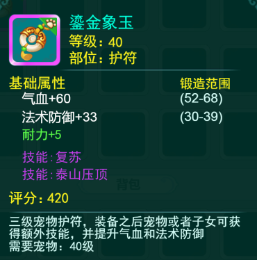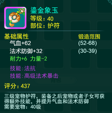 哟,臭宝,今天过得还好嘛~ 近期秋风萧萧,天气是越来越冷了呢,各地的少侠们是否也感受到了凉意呢?这种凉意大多都还是舒服的,但是比少侠们发来的这些投稿,让本瑶感受到的凉意简直好太多了,一起来看看本期的精彩内容吧。 一枚三级宠物护符-鎏金象玉 带有一高一低两个技能 高法暴不用多说 法宠宝宝最爱的技能了 带上能够提高法防的法抗 这个搭配简直就是完美呀 白字属性不是特别高 但是有耐力6点加成 与技能不冲突 很OK 这样看来,在三级护符中,这枚护符确实很亮眼啦 又是一枚三级护符 技能这块也是相当有看头 群法技能泰山压顶 出手就能扫一片 搭配能每回合末恢复气血的复苏 攻守兼备,相当奈斯 白字属性跟上一枚一样不咋好 但也有耐力的加点 在三级护符中也是非常亮眼的啦 哇塞塞~ 这枚护符有点子东西呀 一个是有概率满血复活的高神佑 一个是有概率反射受到法伤的高反射 这个技能搭配简直绝了 另外属性这块也很不错 基础的气血和法防属性都很高 还有魔力6点的加成 这简直就是为法宠量身定制的呀 看过了法系的护符 也来瞅瞅物理系的护符吧 这枚四级紫玉妖姬也值得一看吧 基础法防属性直接拉满 还有耐力6点的加成 技能方面相当不错 能忽视对方物防的高突进 加上提升自身物防的高防御 这样的搭配又有哪只物理宝宝能拒绝呢 啧啧啧... 看看这枚令人发指的龙凤呈祥 一个高必就能秒杀其他很多护符了 还搭配了能概率反击近距离物攻的高反击 这这这...还有天理嘛! 即使基础属性很一般 也是能让人酸上好一阵了吧... 这枚护符也非常优秀的 能提升20%速度的高敏捷 搭配提升气血上限的高强壮 就是一枚“万金油”护符呀 物理宠、法宠...都可以用 不过白字属性没有很亮眼 好在有体质8点的加成 不管怎样 反正会是大家喜欢的护符没跑咯 好了 以上便是少侠们近期的护符投稿了,在座的各位可有不服的呀?有的话不妨拿出来掰头一下? 更多精彩内容,请锁定叶子猪《逍遥情缘手游》官方合作专区。 |