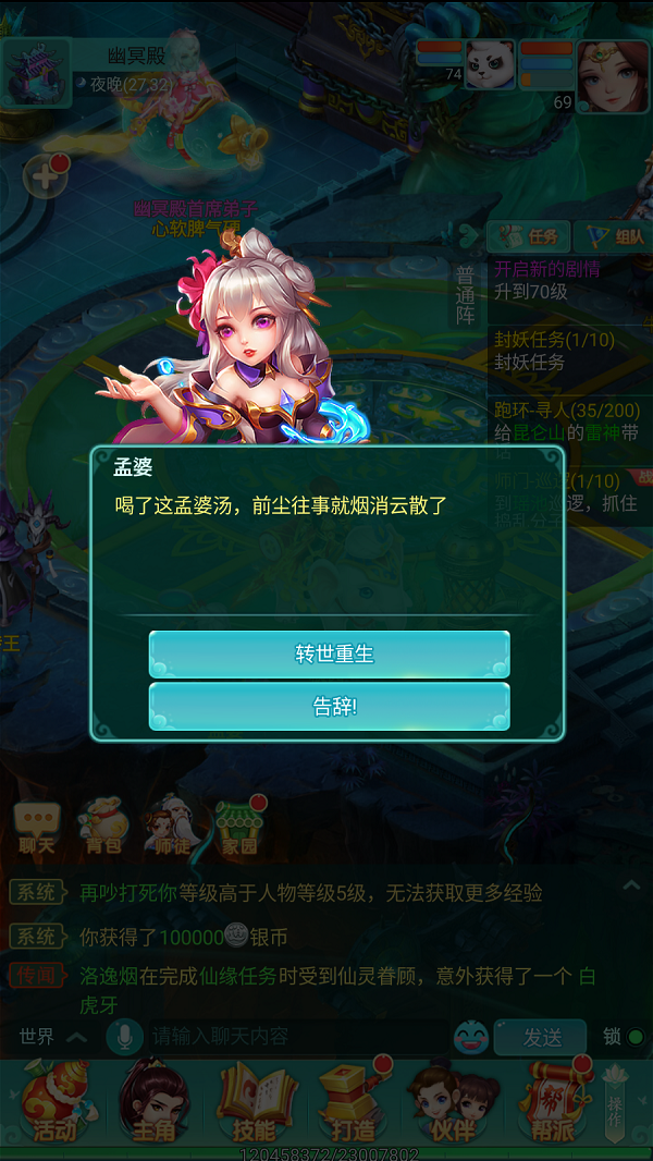 孟婆大家都很熟悉,奈何桥头熬热汤,一碗下肚前世忘。就是这样一位角色,在《逍遥情缘》手游里却有别的职责,那就是帮助少侠整容,以及办理转门派的手续。如此不务正业的孟婆,我们今天就上门去问一问,看看她到底能搞出什么名堂吧。 【转换业务 轻松完成】 孟婆这个NPC位于幽冥殿,是一个专门负责帮少侠转角色、转门派、转性别的人物。找到她并经过一番交谈之后,孟婆会告诉你她可以帮助你转世重生,让你体验全新的人生。 角色等级达到60级就可以进行转换,在界面中你可以自由选择目标的门派与角色,然后花一笔金币或元宝就行了。这一笔花费会基于你的等级逐渐提高,所以转换这事情还是要趁早做决定。 【装备技能 免费转换】 人物进行转换之后,你使用的装备、宝石、阵法和技能也是可以在孟婆那里进行相应的转换的!比如转换武器,会改变武器的外观但不影响属性。这些转换都是在转换人物后附赠的,无需额外付钱。 在进行转换的时候,如果你已经结婚的话,就无法转换成异性的角色了,这一点相信很好理解吧。如果你真想转换,只能先离婚再说了...了解完这一些,如果你确有转换的需求的话,就去找孟婆谈一谈吧。 更多资讯,请锁定叶子猪《逍遥情缘手游》官方合作专区。 |