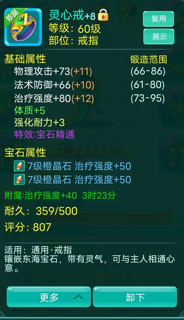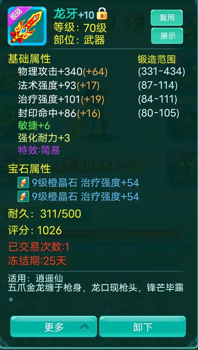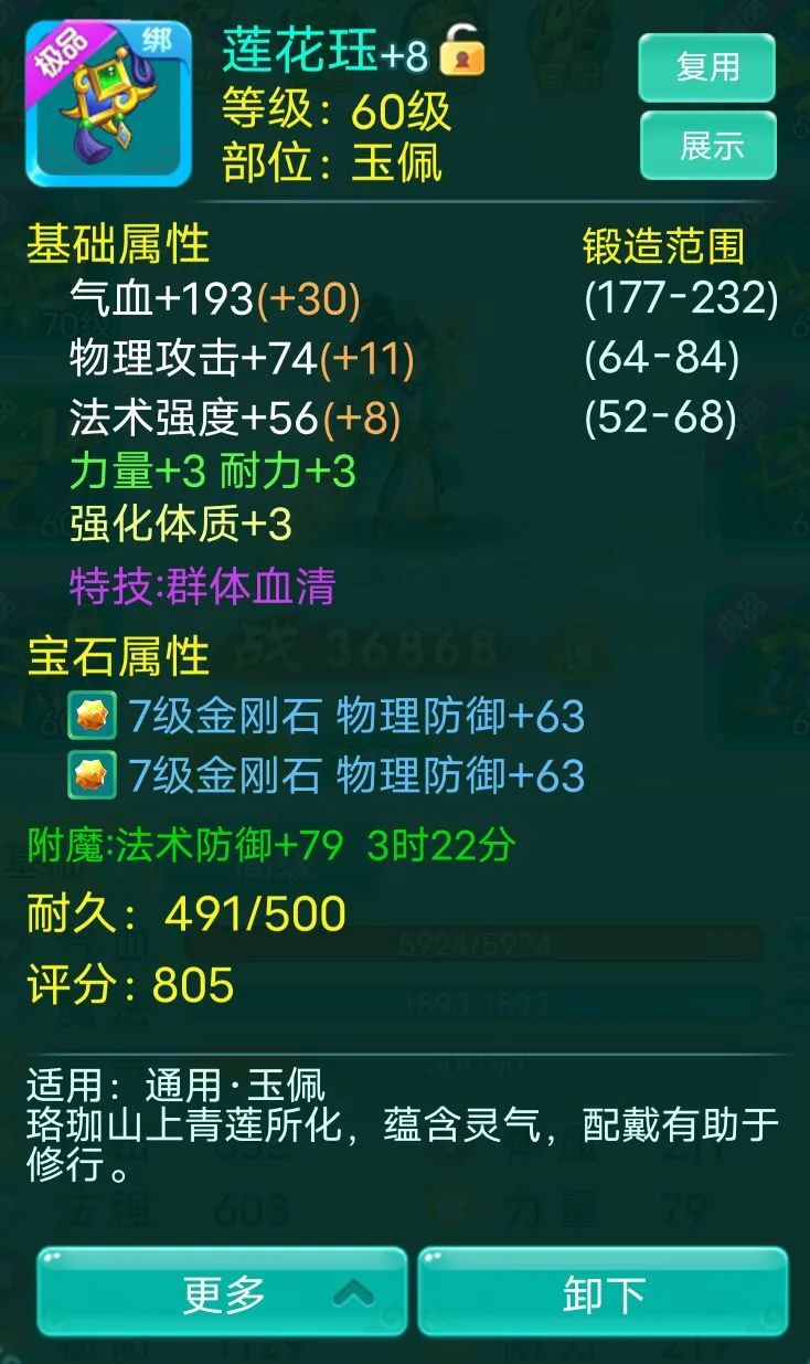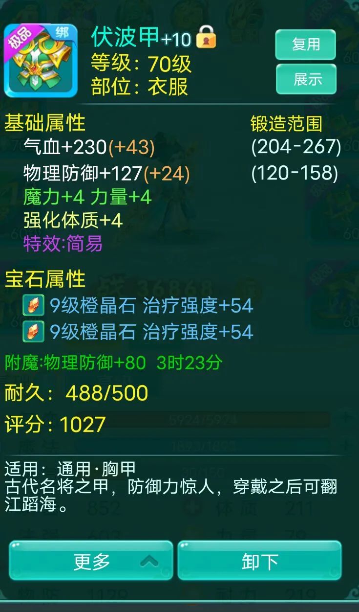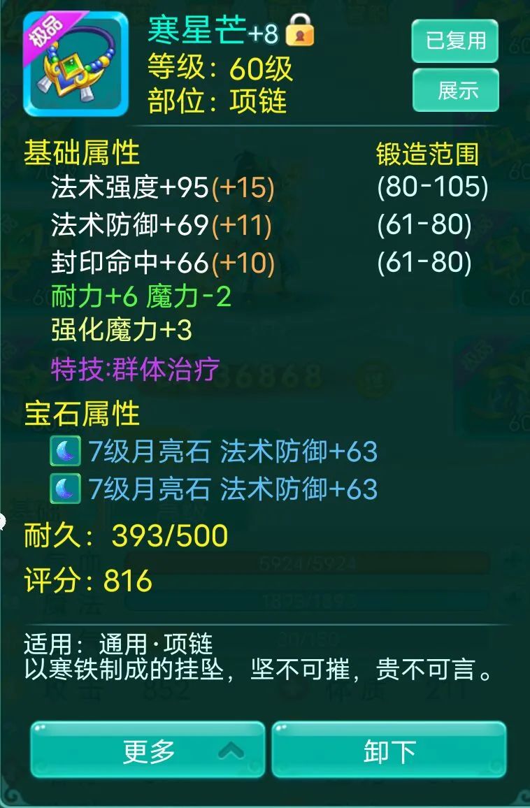 之前有萌新在群里问小猪,如果想在《逍遥情缘》手游里玩个奶妈应该怎么去打造装备呢?今天给大家带来由金戈铁马-不惹情思怨愁少侠分享的一套69级辅助装备搭配,属性不算太完美,但是有四大特技加身也算是非常优秀的,如果你正好想打造奶妈装备,可以来参考学习一下这位大佬的穿搭。 70级武器-龙牙 首先出场的是一件简易武器,让少侠能提前感受到70装备带来的快落~ 白字属性没有特别出彩,治疗强度101算是在中等水准,但也比60装备强许多了,附加敏、耐也很不错,整体来说是一件中规中矩的武器啦~ 60级武器-水晶盔 一顶60级的头盔,白字属性一般般,体、魔各3点的加成没啥毛病,虽说还有力量的加点,但是也无伤大雅啦~搭配上能满血复活所有死亡队友的群体重生特技,这顶头盔还是相当有看头的~ 70级衣服-伏波甲 又是一件70简易装备诶!这件衣服的属性也不是特别高诶,附加的也是体、魔、力 不过问题不大,毕竟也是一件简易装备呀~ 60级项链-寒星芒 哇哦~辅助爱的群体大特技又来咯!60级带群体治疗的项链,能够为全体队友恢复气血;就是白字属性一般般,好在耐力的加点还比较匹配,整体也是一条非常适合辅助的项链啦~ 60级戒指-灵心戒 这枚60级的戒指基础治疗强度属性就很一般了,附加体、耐还是不错的;另外再搭配宝石精通特效,让镶嵌的橙晶石一下提升了20%的效果,属性这块就丝毫不用慌啦~ 60级玉佩-莲花珏 哟呼~群体大特技再次现身!这次是60级带群体血清的玉佩一枚,能恢复全体队友的不良状态,也是辅助少侠最爱的特技之一啦~不过属性这块依旧不咋亮眼捏~ 60级鞋子-踏云靴 鞋子上居然带有辅助爱的大特技-群体太极呢,能在3回合内减少全体好友受到的一半的法伤哟,也是一个很实用的特技来的!基础属性都在中等水准,还有附加敏、耐能拉回一些些~ 60级腰带-水晶腰带 这么多群体特技加持下,咱们能减少怒气值消耗的愤怒腰带自然少不了啦~虽说白字属性也一般子,但魔、耐的加点还是匹配滴~ 以上就是少侠带来的,他的一套69级辅助装备啦。 虽说有一两件装备还可以再精进一番,但是能集4大特技于一身也实属不易啦,在座的少侠有没有要来掰头的呀? 更多游戏攻略,请锁定叶子猪《逍遥情缘手游》官方合作专区。 |