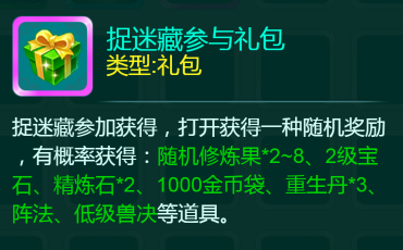 今天瑶瑶准备给大伙儿爆料一个新玩法,是能让大家体验童趣的“捉迷藏”的噢。 如果让大家伙儿畅谈自己童年时的游戏,瑶瑶相信捉迷藏一定榜上有名!想要重新体验童年的乐趣吗?那就同瑶瑶来瞅瞅逍遥世界里的“捉迷藏”游戏吧~ 捉迷藏 活动时间: 周六18:40-19:10。 活动条件: 单人活动,无法组队;人物等级≥30级。 活动介绍: 活动期间,少侠只需单人前往长安城-调皮的小孩处(122,58),点击“我要玩玩捉迷藏”即可进入活动场地。 进入活动场地后,系统会自动匹配8名玩家为一场,每场限时8分钟,进行捉迷藏游戏; 8人会根据孙悟空的两大本领分成两组,一组2人为“火眼金睛”阵营,会化身为孙悟空,赋予10次火眼金睛技能可查看场景内的各种物件; 限定时间内使用“火眼金睛”技能可区分物件真假,找出“七十二变”阵容所有玩家才算胜利,次数用尽则结束游戏。 另一组6人为“七十二变”阵营,游戏开始后的前30秒为躲藏时间;玩家可根据场景内的原始物件变幻成不同的模型,在区域内隐藏起来; 一旦被“火眼金睛”识破后,少侠就会被“打回原形”了;时间用尽后只要有一名玩家未被识破,那“七十二变”阵营即可获得胜利。 活动奖励: 活动设置两种奖励:参与奖励和胜利奖励;每次活动,每人可获得三次参与奖励,一次胜利奖励,之后参加则无法获得奖励。 以上为爆料版本,具体内容请以正式服更新为准。 更多资讯,请锁定叶子猪《逍遥情缘手游》官方合作专区。 |