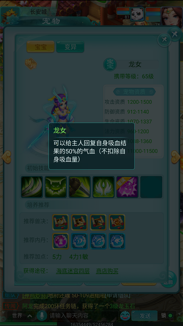 在《逍遥情缘》手游中,69级是一个很关键的等级,不少玩家都选择在这个等级卡级,享受游戏的乐趣。而69级玩家可以选择的宠物,除了神兽外就是那些携带等级为65级的宠物了。其中有一只人气颇高的宠物龙女,受到许多玩家的青睐,你知道是为什么吗? 【龙族公主 英姿美貌】 龙女有着一头飘逸的长发,两支龙角表明了她的身份也成为了她独有的特色,衣服上的飘带使她更增添了几分仙气。这么高的颜值,是龙女高人气的一个原因,但绝不是唯一的原因! 【实力不俗 高攻高速】 龙女除了长得好看,实力也是不俗的,至少在65级阶段的同僚中是这样。龙女的资质可以说是非常耀眼了,高达1560的攻击资质,速度也还不错,只要经过简单的培养就可以打出高额伤害。 【星魂吸血 补给主人】 龙女适合打的技能包括高级连击、高级必杀等通用物理输出技能,如果担心生存的话,也可以打高级隐身、高级神佑等技能。而且在最近的更新中,龙女还得到了星魂技能,可以将自己吸到的血给主人恢复,所以给龙女打个高级吸血也是很实用的哦! |