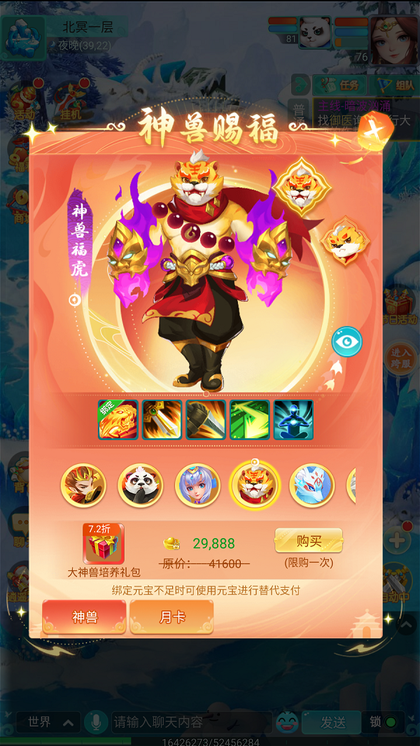 在《逍遥情缘》手游里,神兽的逼格很高的存在,不仅0级就能携带,而且实力上限很高,到了大后期依然可以独当一面。这样的神兽,有什么办法可以得到呢?今天就告诉大家方法吧...当然,我指的是免费获取或是打折获取的方法,相信肯定对你有用! 【新服盛典】 其实,每次在新服开启的时候,都是有一个机会可以获得神兽的,不过挺需要运气的,这便是“新服盛典”里的抽奖。少侠可以通过积攒活跃度来换取抽奖机会,运气好的话,就能直接得到神兽蛋哦。 【幻境寻宝】 如果没能在新服盛典的抽奖中得到神兽蛋,那么你还有一个机会,那就是参加每周二晚上8点开启的幻境寻宝活动。这个活动中有概率获得钥匙来开启宝箱,运气好的话也是能开出来神兽蛋的。 【神兽赐福】 除了直接获得神兽蛋,游戏中还有折扣购买神兽的神兽赐福。你可以购买各种大小神兽的培养礼包,统统都是以原价的7.2折出售。不仅如此,礼包中还附带了相关培养素材,让神兽得以快速成型! 更多资讯,请锁定叶子猪《逍遥情缘手游》官方合作专区。 |