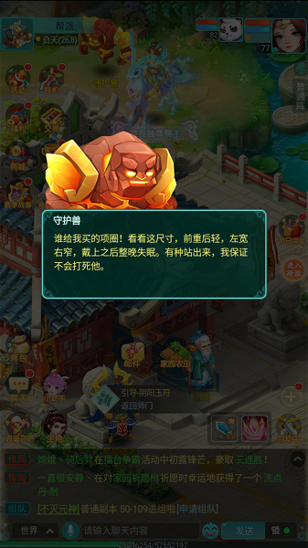 在《逍遥情缘》手游中,帮派是每位少侠都会加入的一个组织,在这里你能学到很多技术,结识很多朋友,以及参加很多活动。作为这样一个共举大义的大本营,其实也有一张专门的地图场景。今天,我就带大家去帮派里逛逛吧! 【豪华院落 帮派宅邸】 帮派所在的地图像是一个大宅院,大户人家才住得起的那种,毕竟帮派的资金都是很雄厚的。在地图中央有一栋宅子,周围还有荷塘、石狮子等,被打理得很好,看上去就显得挺气派。 来到宅子前,发现这里有许多帮派里的人员驻留于此,包括总管、帮战使者、接引使者等等。你在帮派中的所有事务,几乎都需要跟这些NPC进行交流互动,所以他们也是你的老熟人了。 【守护神兽 一身怨气】 在帮派地图的西南角,是一片亭台与荷塘。池塘里清水如碧,荷叶荷花无比繁盛,还种着参天大树,一看就是有专人精心打理的。帮众可以在这里走动散心,不失为一件闲暇惬意之事。 继续往北走,就可以看到一个石头人帮派守护兽。不过这守护兽过的可不好啊,买的项圈都不合身,让它甚是难熬,已经积攒了一身怨气了。我们还是先走为妙,免得被守护兽给修理咯! |