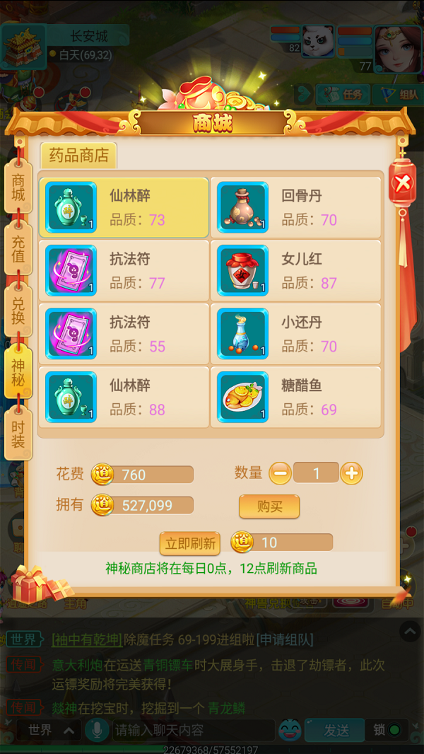 在《逍遥情缘》手游的商城里,藏着一家颇为特别的店铺——神秘商店。它之所以被称为“神秘”,并不是因为门面隐蔽,而是因为它里面的商品,从来不按套路出牌。每一次打开,都像拆盲盒一样充满惊喜。今天,我们就一起去探探这家店,看看它到底藏着什么好东西。 【随机上架 品质在线】 神秘商店的最大特色,就是商品不固定。从附魔符、药品、酒品到各类美食,应有尽有,而且品质普遍不俗。如果你自己帮派技能还没点高,做不出高品质的消耗品,不妨每天来这里逛一逛,说不定就能顺手补个货。 【一天两刷 定点刷新】 神秘商店每天刷新两次,分别是0点和12点。养成定时打卡的习惯,你会发现它时不时就冒出一些性价比极高的高品附魔符,正好用来补贴日常消耗。毕竟,谁不想要便宜又耐用的“战力口粮”呢? 【急用可刷 金币换新】 如果你急需某类道具,而商店刚好没刷出来,也别急——界面下方有一个立即刷新的按钮,点一下就能重置商品列表。当然,刷新需要消耗金币,属于“用钱换时间”的操作。非紧急情况,还是等免费刷新更划算。 |