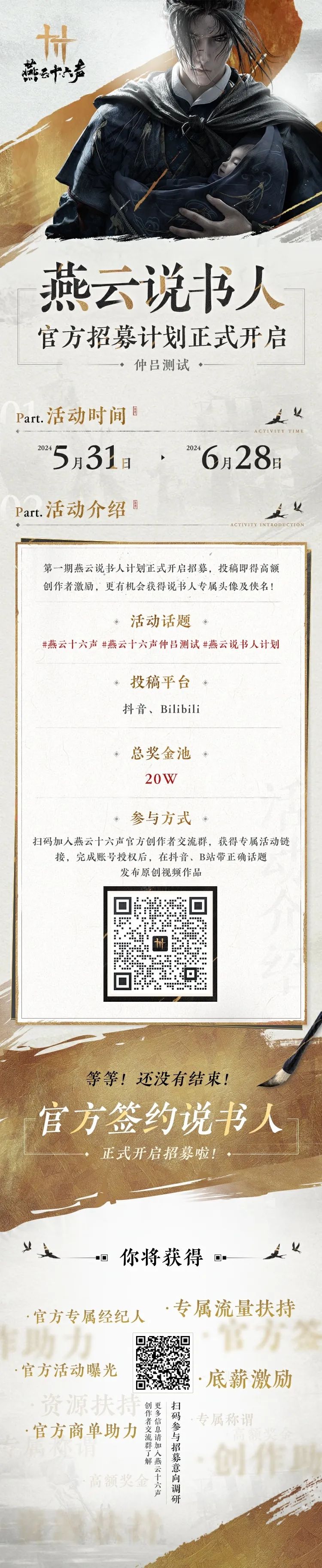 剑已佩妥,出门即是江湖—— 仲吕测试招募将于5月27日24点截止,测试将于5月31日15点正式开启! 同时,近期我们计划邀请部分游侠进行简短的线上电话访谈,希望能听取您对游戏的评价和游戏偏好,欢迎点击文末“阅读原文”进一步了解,期待您的参与~ 我们也将尽快筛选测试名单,测试资格预计将于明日起分批次通过短信和邮件陆续发放。 又逢燕云,指日可待。想必游侠们早已摩拳擦掌、迫不及待,想在本次测试中大展拳脚。 而在本次测试中,游戏不仅将开放更多新剧情、新BOSS,新的难度挑战也即将解锁—— 在剧情、推荐、绝境的基础难度选项之外,本次测试将开放全新难度:“绝境·浴血”,绝境之中更有险境。 概括来说,新的难度适合什么样的人挑战: 想秀一把的人 想搞点节目效果的人 想挑战一下极限操作的人 想被BOSS多爱几次,新造的人 想当个观众,劝侠友选完看TA被虐的人 心动,常常带来危险 在绝境·浴血难度下,剧情和世界探索中的敌人将得到大幅战力提升,且进攻欲望更强。 更具挑战性的体验,也将带来更为突出的“彰显”——选择绝境·浴血难度进入游戏,可以获得专属标识和徽章。 需要注意的是,该模式只能在初始创角中选择。进入游戏后,游侠可以随时在设置-难度中调整为其他难度,但切换为其他难度后,将无法再次选择绝境·浴血难度,也将失去专属标识和徽章。 血脉偾张的战斗一触即发,而在浴血模式下最引人注目的,除了更加狂暴的对手,还有就是:血条裂开!也红了! 流动的血色将见证每一场战斗的惊心动魄,而迸裂而散的全新视觉设计,也将呼应战斗中的生命力和随时拉满的肾上腺素——亦能让所有人都看到,游侠们在“绝境”中浴血而战的勇武。 数一数二的高手,起杀心了 从今一战胜,不使虏尘生。 在“绝境·浴血”难度下的战斗中,完成首领首通以及完成首领回溯试炼·鬼神愁难度后,击杀BOSS的数量将随着那致命一击,化作明确的数字记录在专属标识之侧——挥剑斩邪煞,让每次浴血挑战都作数! 象征击杀的数字,将不仅是游侠们亲历绝境的记录,更是绝顶高手的“秀肌肉”。 当然,进退皆有侠意,江湖无限自由——“绝境·浴血”难度,只是燕云世界中诸多个性化选择的一种。 我们的目标,依然是让游侠们都能各得其乐,无论是追求闲趣,还是追求战斗刺激,选择权永远都在游侠们手中! 新挑战新招募,成为燕云说书人 既然血条红了,游侠们也要红了!既然这么能秀,就别藏着了! 本次仲吕测试将不会对玩家合理的分享传播做限制,欢迎各位游侠分享在游戏中的精彩瞬间。但本次测试所有体验内容均为开发中版本,不代表游戏最终品质。 新的挑战新的故事,也需要新的英雄来诉说:官方现已开启“燕云说书人”创作者招募活动,参与创作活动不仅可获取丰厚现金奖励,更有机会成为官方签约创作者,欢迎点击下图了解参加。 -END- |