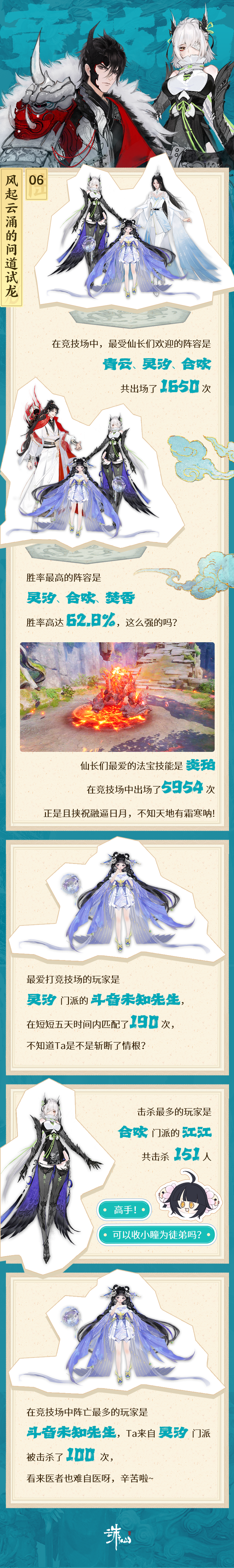 仙长们好久不见,大家有没有想卷纸...啊不是,有没有想念小瞳呢? 在上周结束的启行测试中,仙长们勇闯黑石洞,决战竞技场,探索大地图......整个《诛仙世界》里都留下了大家的jio印。今天带仙长们看看首测期间,那些不得不说的趣味记录叭~ 点击下图放大预览: 黑石洞 问道试龙 浮世全览卷 拜拜是骗你滴!除了以上内容,小瞳还有一些压箱底的记录,偷偷在这里给仙长们看! “你不是真正的孤寡” 罒ω罒 在天人五问的问情环节,有1357人选择“神仙眷侣,携手天涯”,说好的一起孤寡呢?原来仙长们大部分还是期待爱情的吖(●'?'●); “呜呜这是暴力” o(╥﹏╥)o 在副本黑石火龙洞中,有68%的仙长选择暴打狐族;累计共有171811只小怪被仙长们按在地上摩擦; “就要拍拍拍” (*^▽^*) 首测期间仙长们共按下快门3431次,看来你也是热爱记录生活的小哥哥/小姐姐一枚吖~ “忙忙碌碌寻宝藏” ヾ(?°?°?)?? 5天中,仙长们共消耗了璇玑点数:1492000点。不知道大家频繁出行,是去游山玩水、探索世界、还是斩妖除魔了捏? 这次是真的拜拜啦,今天就跟大家聊到这里,仙长们咱们下次再见哟(≧?≦)? 更多官方资讯,请锁定叶子猪《诛仙世界》官方合作专区。 |