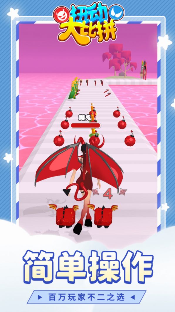 扭动大比拼游戏是一款十分好玩的跑酷闯关游戏,超级趣味的游戏体验,整体的玩法内容极为的轻松,而且跑酷闯关的操作玩法非常的简单,快来下载试玩吧。