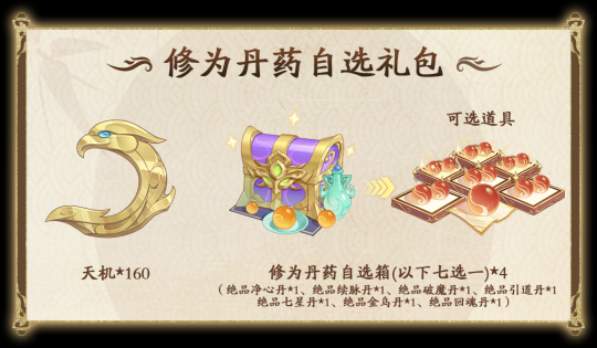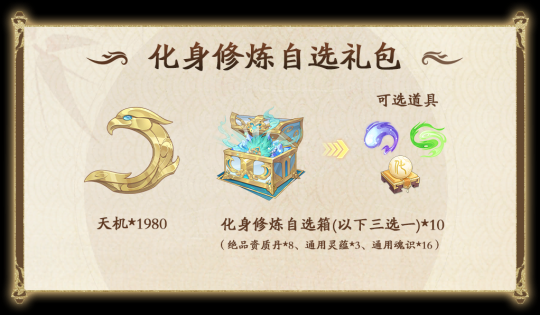 道友速来!《踏风行》抖音店铺新品上线,各式养成好物任选,轻松铺平你的修仙坦途! 【仙魔修炼自选礼包】 苦于材料不够无法迅速提升仙魔境界?【仙魔修炼自选礼包】全新上线!仙魔修炼、真魂养成材料一应俱全,以往只能通过闯关获得的材料现在可通过抖音店铺迅速补给,道友可自行挑选搭配哦! 【化身修炼自选礼包】 【化身修炼自选礼包】全新上线!包含可迅速提升战力的绝品资质丹、神识养成通用材料,道友可自行挑选,全面加强化身BUFF加成! 【装备养成自选礼包】 全新【装备养成自选礼包】上线!包含铭文锥、锁文晶、洗尘砂,道友可自行挑选搭配,针对性加强装备战力! 【自选抽卡券礼包】 全新【自选抽卡券礼包】上线!增加异兽抽卡券-绝品万兽契令可选!分两档价位道友可自行挑选: 【修为丹药自选礼包】 全新【修为丹药自选礼包】上线!增加绝品金乌丹(法相境)和绝品回魂丹(大乘境)可选: |